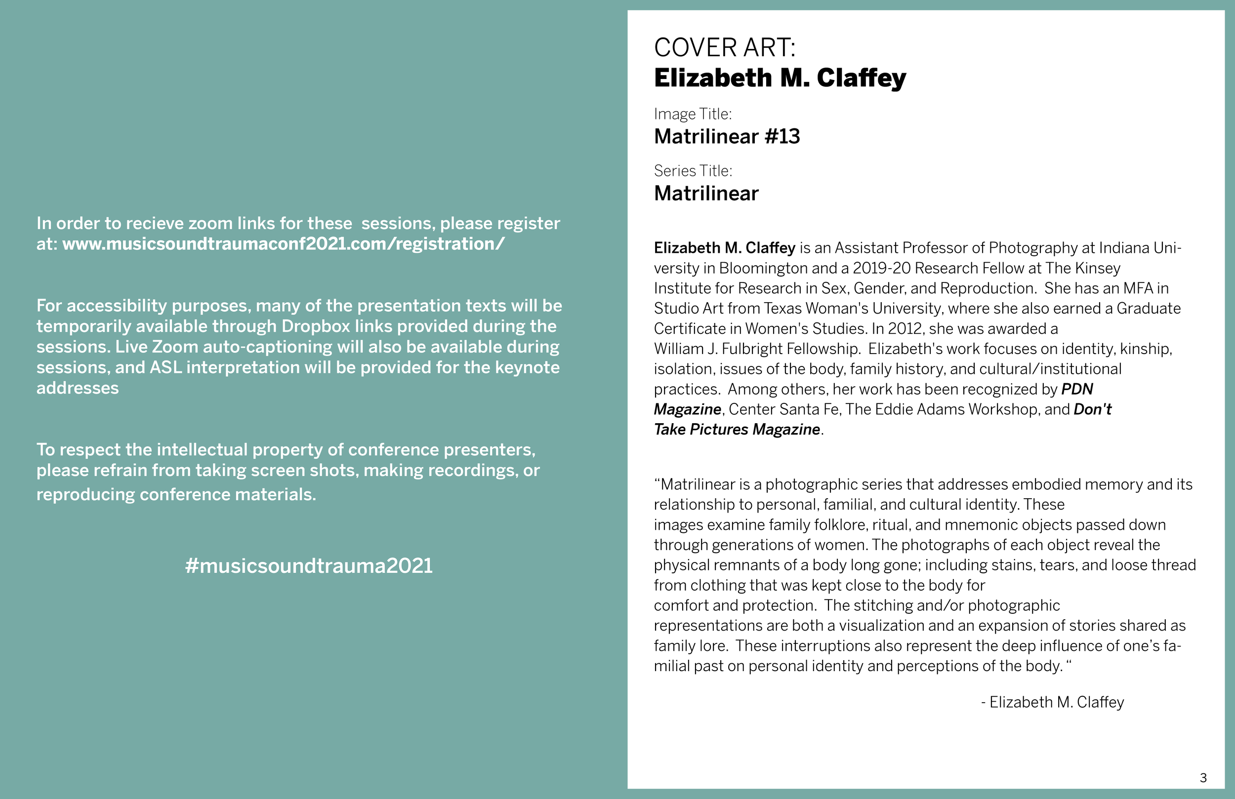 Music, Sound, and TraumaConference Program for Jacob School of Music Event Example spreads from 186 page program